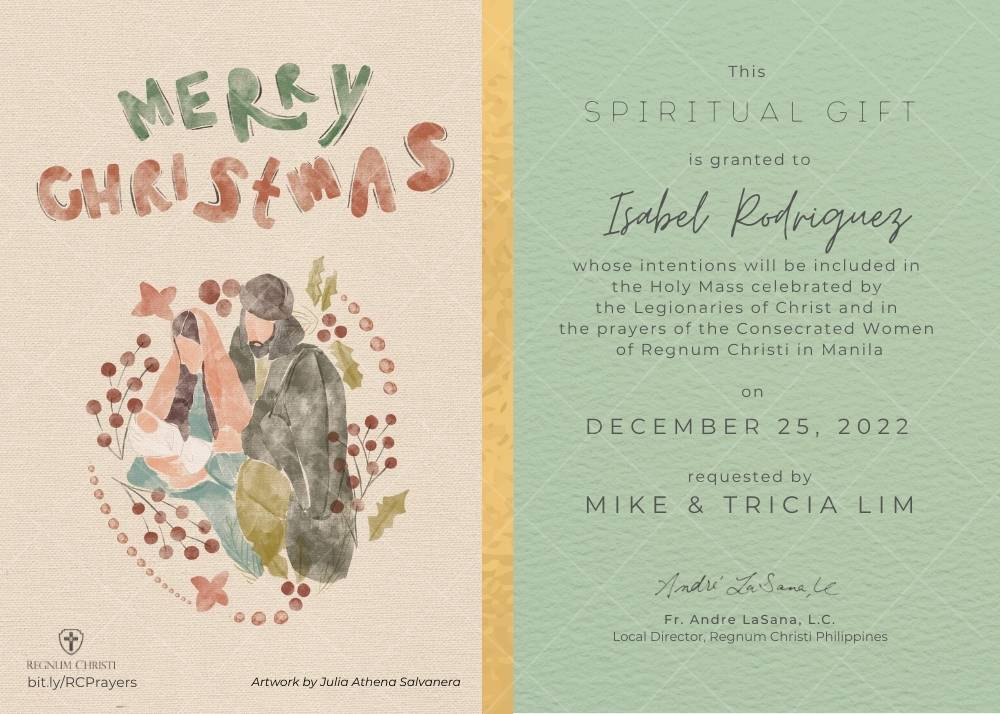 This digital prayer card, created for special Christmas request, beautifully captures the essence of a spiritual gift. A Holy Mass is offered with heartfelt prayers.