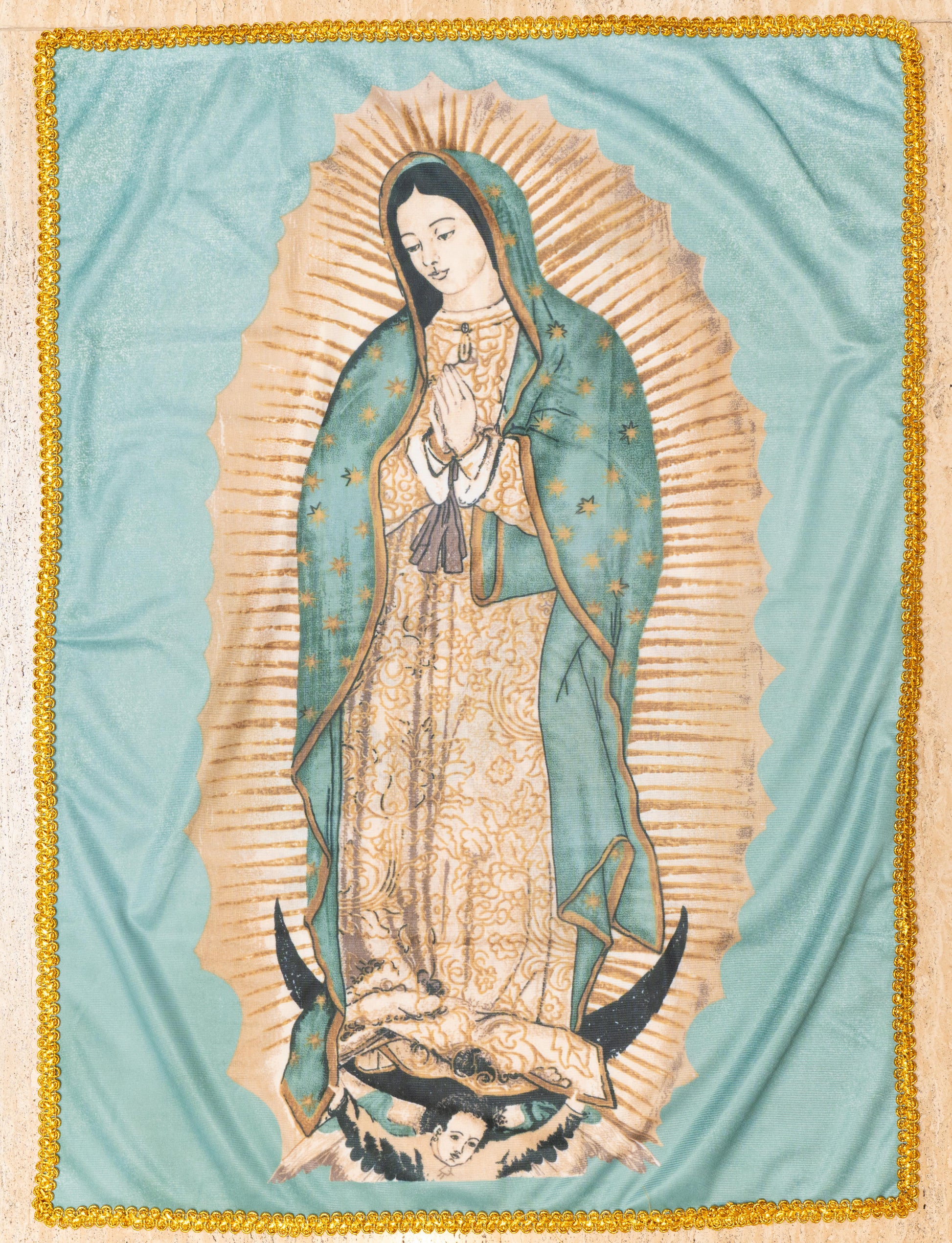 A. Classic Tilma: The traditional tilma that we know, bordered with gold lace.